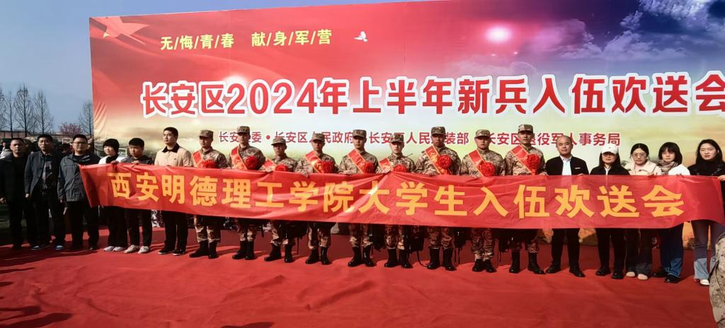 3月14日上午,学校在国防科大实验训练基地举行了2024年春季应征入伍学生欢送会。学校党委学生工作部、人民武装部副部长童杨梓、相关二级学院党委副书记、辅导员、人武部老师及入伍新兵家长代表参加欢送会。