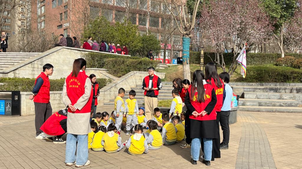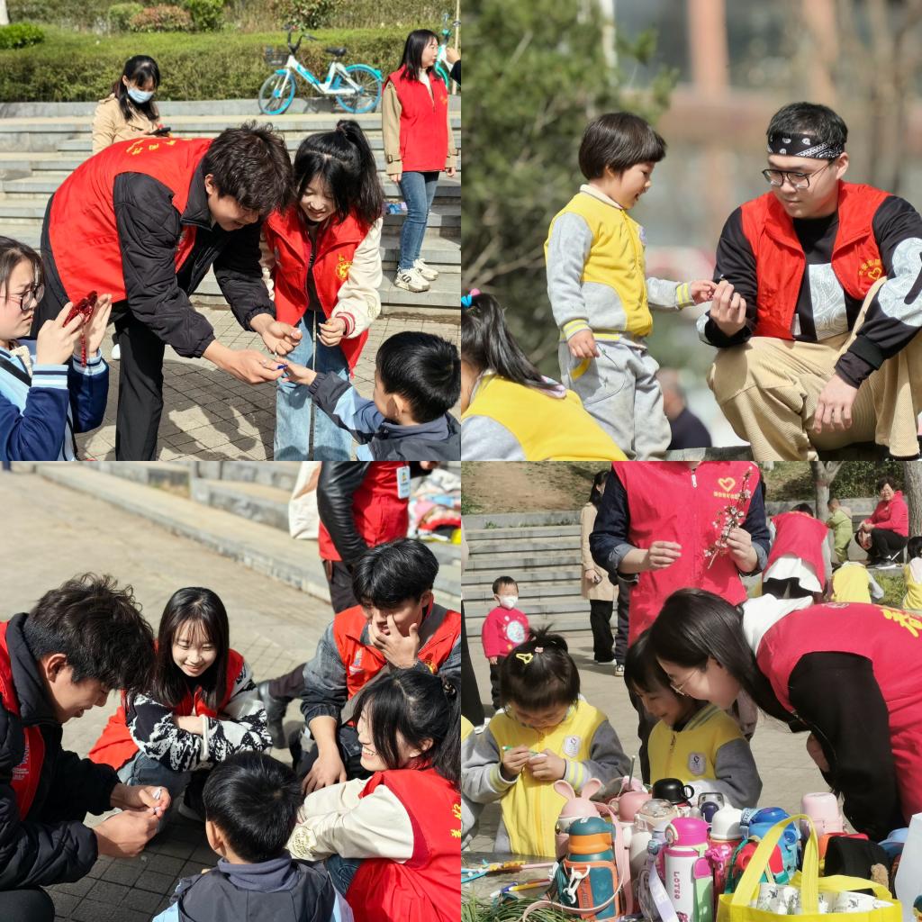 经过前期支部同社区、幼儿园的对接,在支部书记罗夫惠的带领下,组建了志愿者服务队。在韦曲街道春天花园社区广场,老师和志愿者们将幼儿园儿童分为“了解春分节气知识”、“春日画蔡丹活动”、“春日贴风车活动”和“寻找春天的足迹”四个小分队。学院学生志愿者们带领各自分队的儿童开展活动,让辖区孩子们充分了解到春分节气的相关知识,体验到了自己动手画彩蛋、制作风车、制作“永生花”的乐趣,志愿者们互相配合、分工明确,井然有序。培养了孩子们的耐心和细心,提高了孩子们的创造力、想象力。