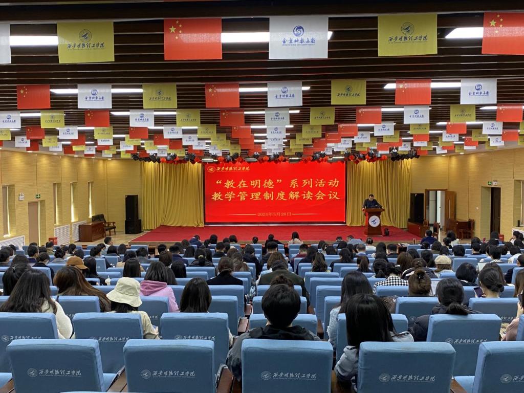为深入贯彻落实学校《关于开展“教在明德”系列教学(学术)活动安排的通知》要求,提升教师对教学管理制度的深刻理解和对制度文件的有效执行,进一步提升学校教育教学水平和应用型人才培养质量,推进学校教育事业高质量转型发展,3月20日,教务处特面向二级学院召开了教学管理制度解读会议。各二级学院主管教学副院长、专业负责人、办公室主任、教务员及骨干教师,教务处及质评办相关人员参加了会议,会议由教务处副处长任华主持。
