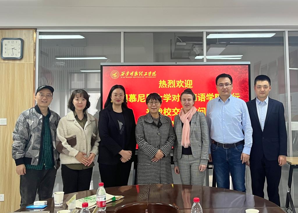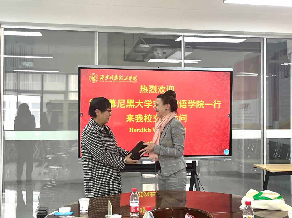 讲座结束后,德语专业负责人王勇副教授陪同德国校方参观校史馆,讲解了学校的发展历程和文化内涵。