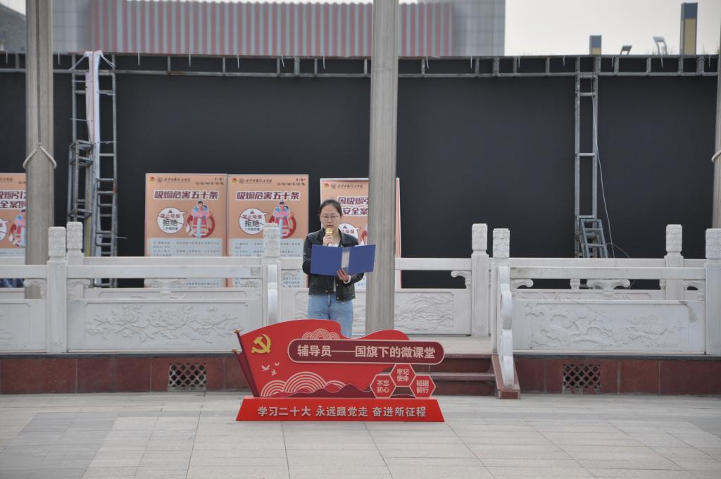 4月1日,“辅导员说成长”——第三十三期辅导员讲微课“爱国——从心出发,重在践行”国旗下的微课堂爱国主义教育系列活动在学校中心广场举行,党委学生工作部老师、高等职业技术学院师生代表参加活动。