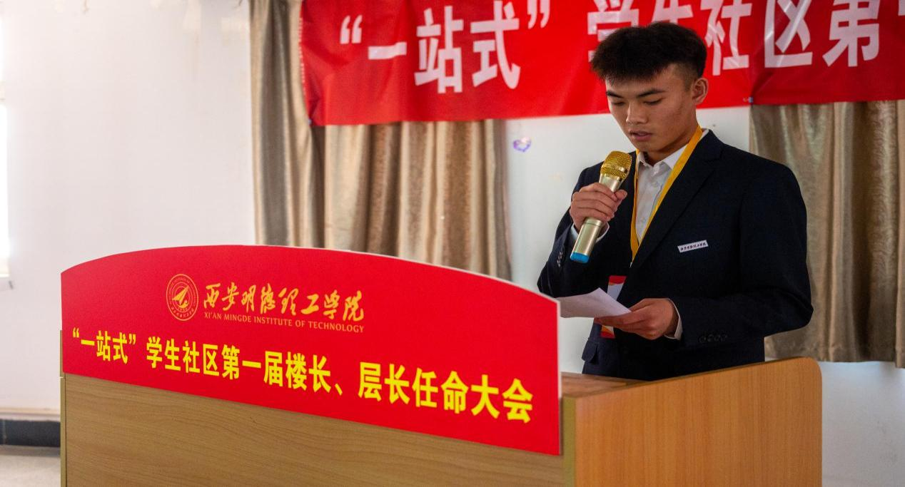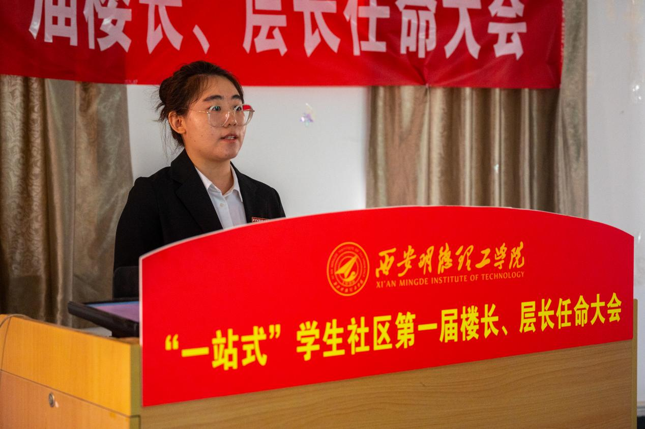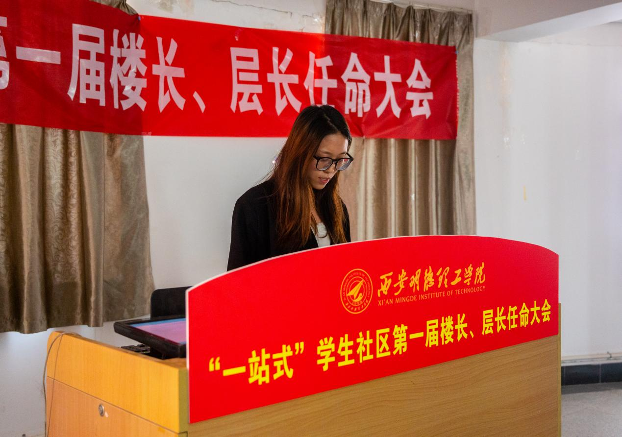 大会伊始,校团委李丹妮老师宣读了《关于“一站式”学生社区楼长、层长任命的决定》文件,此次共有19名同学获聘楼长,106名同学获聘层长。