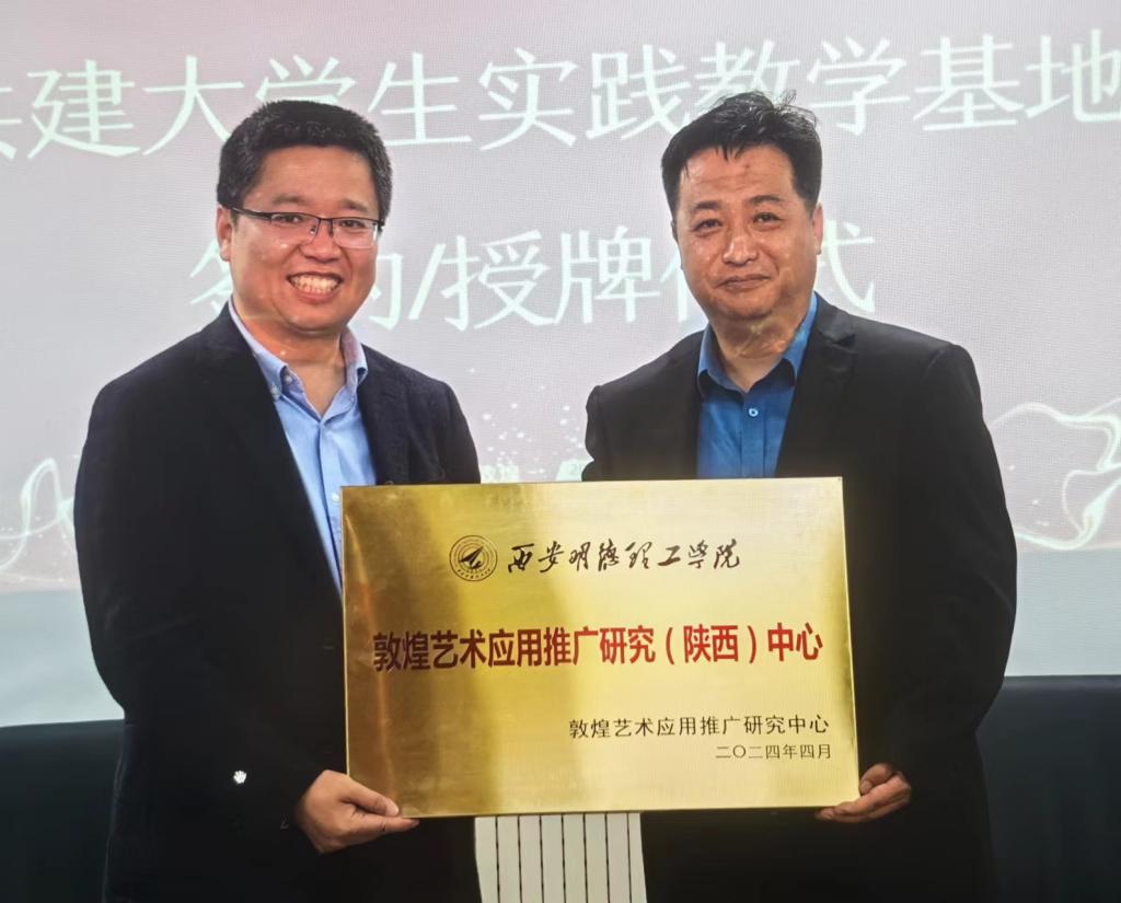 座谈交流后,双方举行了隆重的签约和授牌仪式。敦煌艺术应用推广研究中心被授予“Ky开元集团艺术与设计学院实践教学基地”,Ky开元集团被授予“敦煌艺术应用研究(陕西)中心”牌匾。双方表示,将通力合作,共同推动艺术教育与文旅产业的深度融合,共同培养符合市场需求的高素质艺术人才,共同推进文旅产业的创新发展。
