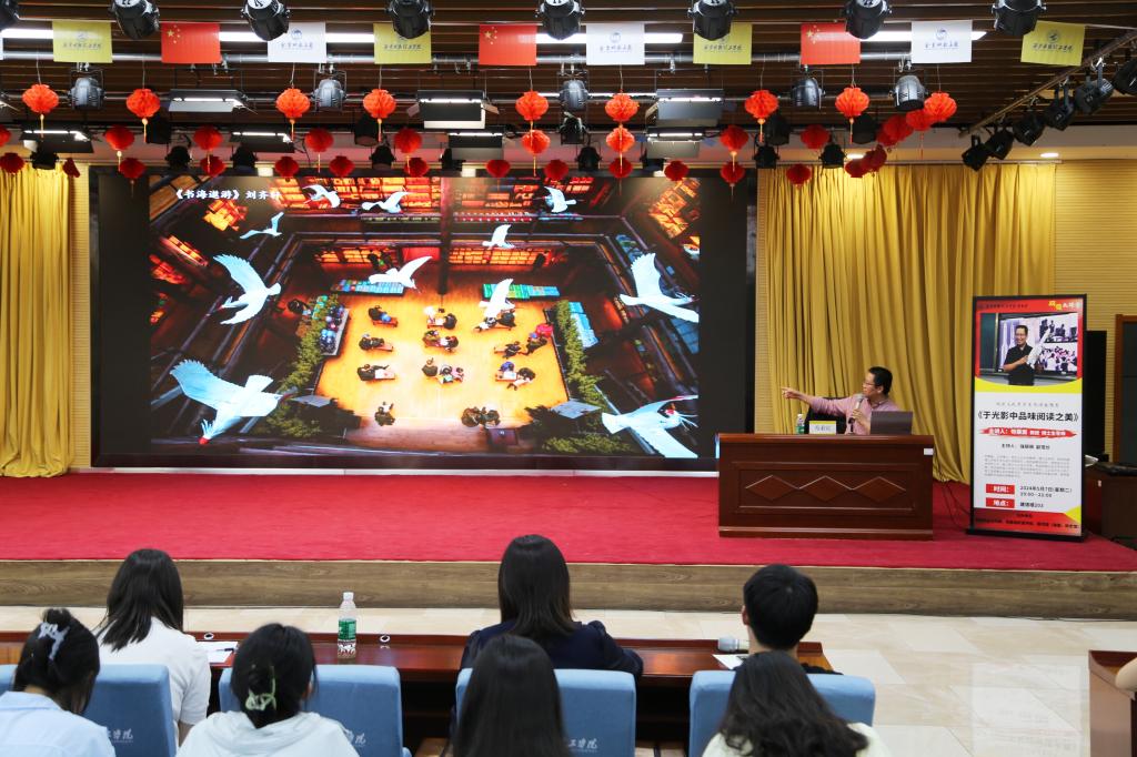 为全面推进大学文化建设,构建大学校风、教风、学风内涵体系,在第29个世界读书日来临之际,图书馆联合校党委组织宣传部、党委学生工作部、校工会、校团委开展“学在明德・书香满园”阅读文化节活动。5月7日晚,2024年阅读文化节系列活动之“学术月讲座”如期而至,400余名师生在建德楼203报告厅齐聚一堂,于光影中品味阅读之美。本次讲座由图书馆副馆长强丽丽主持。