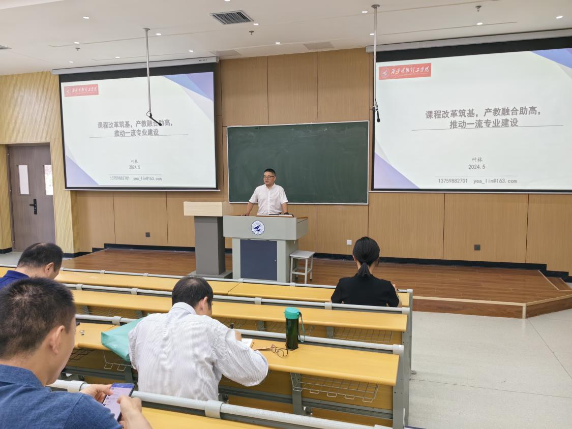 接着,国家教育部工程教育认证评审资深专家组长叶林教授为全院教师带来题为《课程改革筑基,产教融合助高,推动一流专业建设》的报告,报告从勇于直面现状问题,迎接时代人才培养挑战;创新设计总体方案,推动一流专业持续发展;大胆推进课程改革,筑牢ICT人才工程培养基石;真正落实产教融合,提高ICT工程人才实践能力等4个方面进行详细的阐述,信息工程学院将面向未来产业发展,以学生为中心,借助于现代教育信息技术,构建激发自我学习和主动探究兴趣的跨学科ICT工程创新人才培养体系,通过调整课程结构、更新课程内容、改革教学方法,确保学生所学知识的前沿性和实用性。