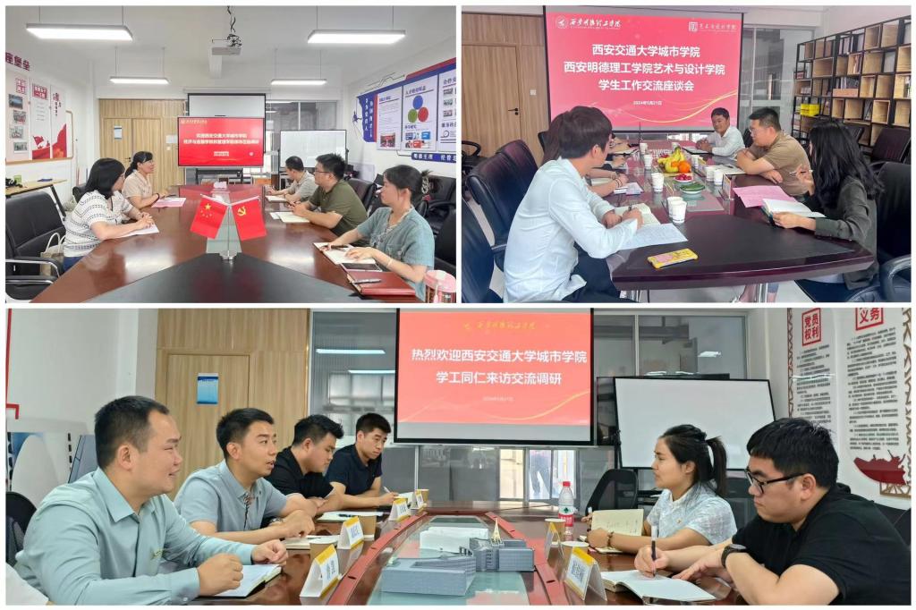 会上,童杨梓对西安交通大学城市学院学工同仁的来访表示热烈欢迎。他重点从工作体系、制度建设、队伍建设、学风品牌、智慧学工等进行简要介绍。随后双方就学生工作队伍建设与“大思政”格局构建、学生教育管理工作、“一站式”学生社区建设、学风建设、融合门户平台使用等工作内容进行了深入细致地交流探讨。