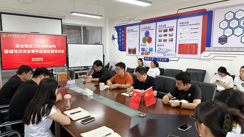 为全面加强和改进学院安全工作,切实维护学校安全稳定的大好局面,提升学生工作人员的安全防范意识与突发事件应对能力。5月23日下午,经济与管理学院在明志楼北606会议室召开安全稳定工作分析研判暨辅导员突发事件应急处置培训会。学院党委书记兼行政副院长何文举和全体辅导员参加会议,会议由学院党委副书记冯纪潮主持。