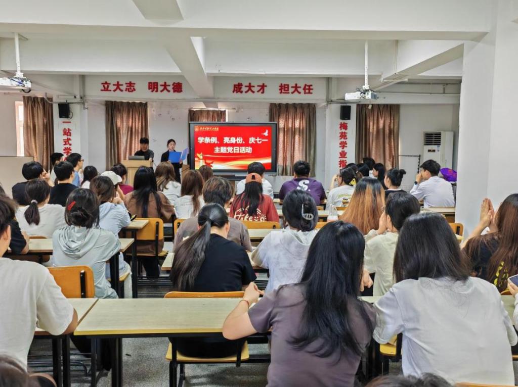 为庆祝中国共产党成立103周年,进一步加强党的纪律建设和校规校纪教育,推动全面从严治党向纵深发展,6月28日,经济与管理学院学生第二、第四、第六、第七党支部在梅苑“一站式”学生社区开展“学条例、亮身份、庆七一”主题党日活动,经济与管理学院学生党支部书记倪星星、马子墨、刘文静和相关支部的学生党员参加了活动。