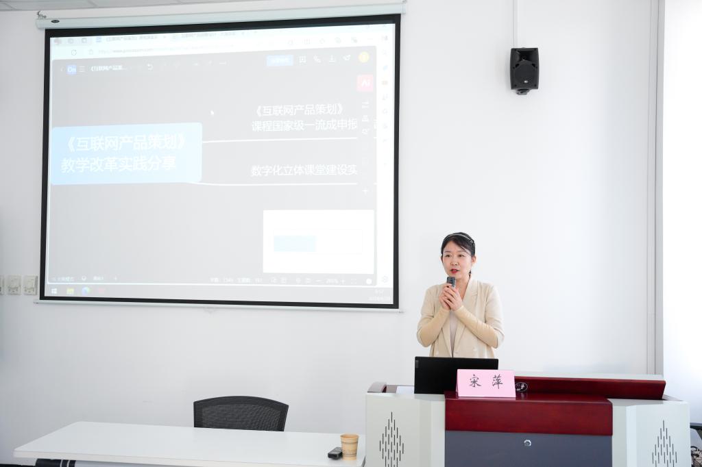 培训班第一讲由信息与商务管理学院电子商务与供应链管理系副主任、副教授宋萍带来“《互联网产品策划》国家级一流课程申报过程经验分享”。宋萍老师以思维导图的方式结合《互联网产品策划》课程申报案例分享了自身在国家级一流课程申报过程的经验,展示了教案与教学设计、录课及申报的后续工作等实例,以及数字化立体课堂视角下实现课程改革和实践的路径。让老师们深刻体会到申报国家级一流课程的艰辛和不易,这不仅需要扎实的专业知识和丰富的实践经验,还需要敏锐的洞察力和创新思维。