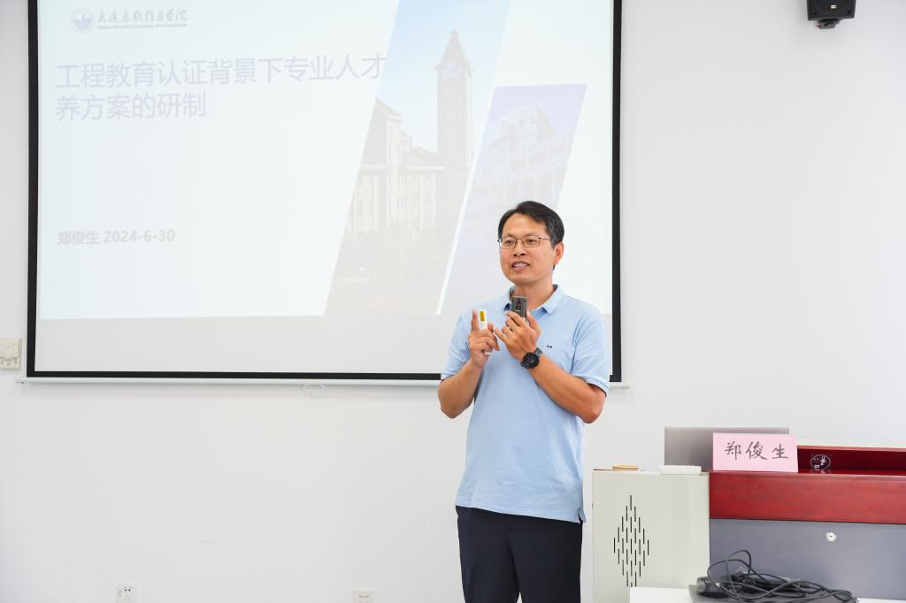 6月30日上午,大连东软信息学院计算机与软件学院副院长、计算机与人工智能系主任、教授郑俊生带来第四讲“工程教育认证背景下专业人才培养方案的研制”。他结合计算机与软件学院各专业特点从人才培养方案修订的依据、主要内容、毕业要求达成情况评价、课程目标达成情况评价及存在的问题和思考几个方面阐述了计算机与软件学院在人才培养方案制定的思路、课程设置和实践体系优化等内容。老师们通过学习对于人才培养目标与实践教学结合有了更深入的理解,也对自身教学及人才培养提出了更高要求,确保人才培养与行业需求接轨,提升学生解决复杂工程问题的能力。