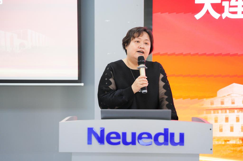 大连东软信息学院继续教育学院院长毕晓明做总结讲话,她再次感谢学校教师的积极参与和支持,通过这次培训对学校专业负责人的能力提升有了更为深刻的理解和认识,希望增加与各位同仁的交流与合作,共同分享教育经验和资源,推动教育事业的共同进步。