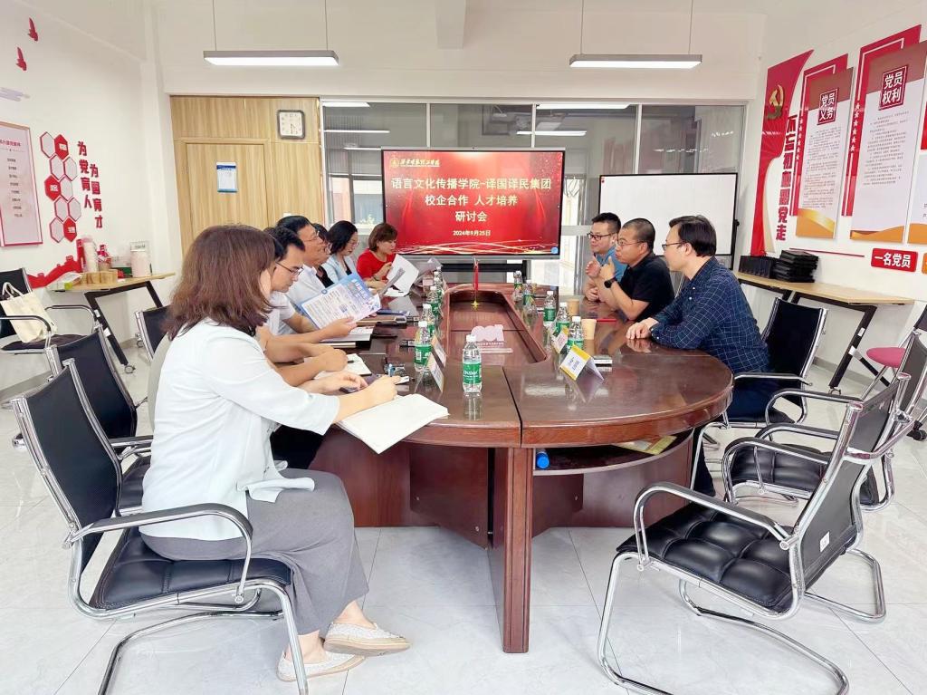研讨中,双方围绕如何开展高质量合作、优化人才培养策略展开深入交流。内容包括译著翻译、校本教材编写和开发、学术论文发表、双师型教师培养、双师课堂共建、省级教学成果奖申报、翻译项目管理、学科竞赛、CATTI等级培训及报考等多元校企合作模式。