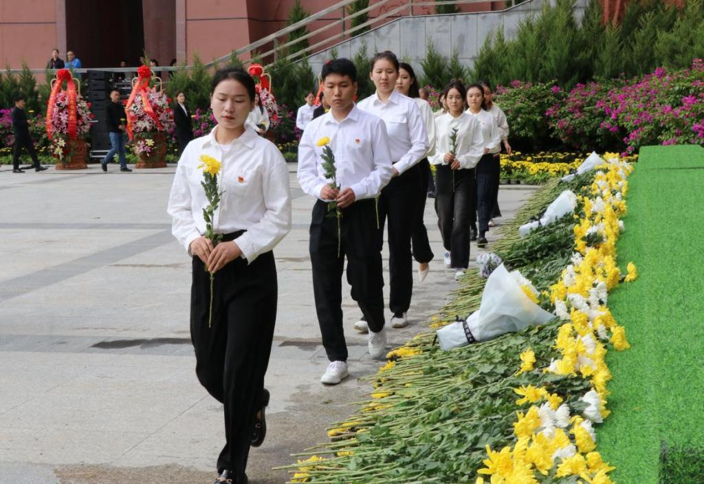 师生党员们逐一为烈士墓碑献上鲜花,大家在烈士墓碑前驻足凝望,深情鞠躬,表达对革命先烈的深切缅怀和崇高敬意。一朵朵鲜花,不仅是对革命先烈生命的礼赞,更是新时代青年对红色基因的赓续和传承。