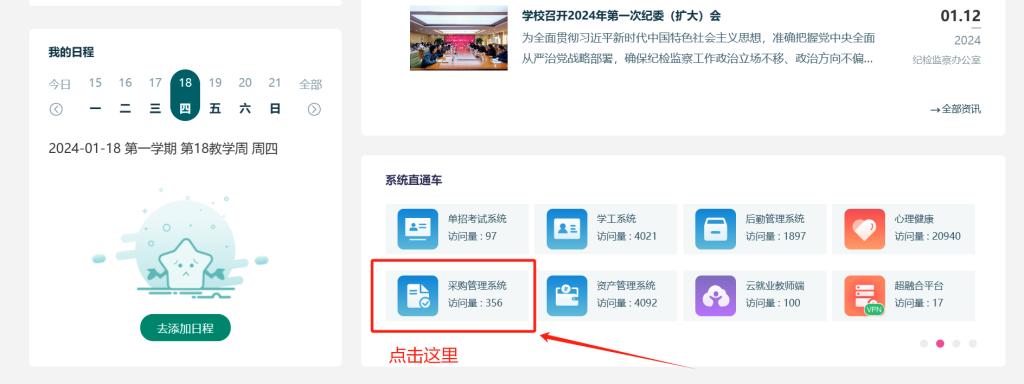 融合服务门户已经实现了对采购管理系统的集成,日常使用通过点击系统首页直通车中的“采购管理系统”进入系统页面,或者也可通过采购待办事项点击进入。具体说明如下: