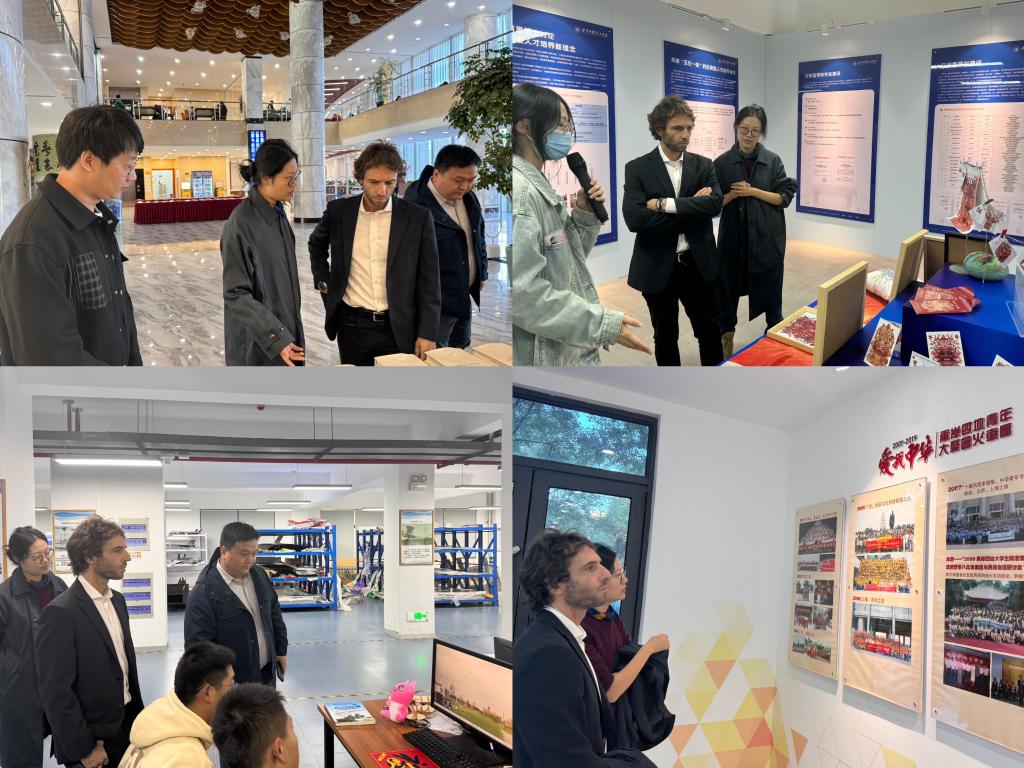 讲座结束后,马提尼副校长一行参观了数字媒体&CAD实验室、摄影摄像实验室、CMF实验室、模型制作实验室等艺术与设计学院教学环境。参观过程中,马提尼副校长与学生进行了模型作品创作思维、制作过程等方面的深度交流。