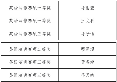 我们衷心祝贺以上同学取得的优异成绩,也希望他们能够在以后的学习和生活中继续努力,同时也期待能有更多的同学积极参与到各类英语竞赛中来,挑战并超越自我,不断提升自己的英语能力水平。