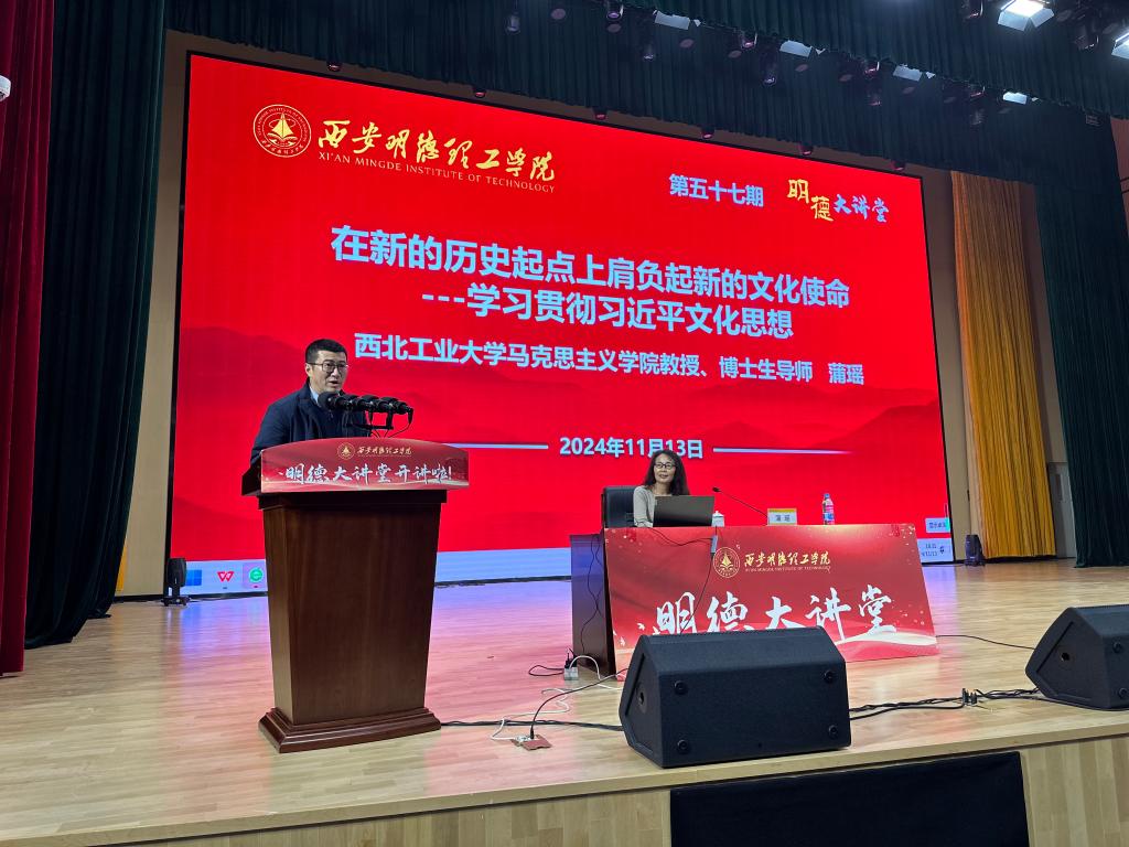 11月13日,开元第57期“明德大讲堂”在四季廊桥报告厅隆重举行。本次讲座邀请到西北工业大学蒲瑶教授作题为“在新的历史起点上肩负起新的文化使命——学习贯彻习近平文化思想”主题讲座。讲座由人力资源处副处长康抗主持。
