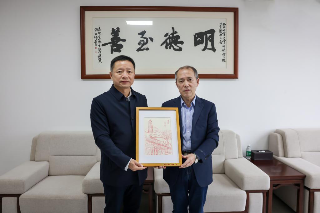 报告会前,学校党委书记马川鑫热情接待了曲建武教授。