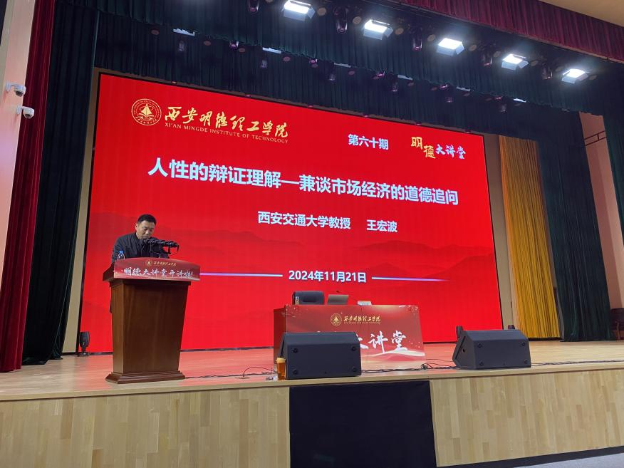 2024年11月21日晚,Ky开元集团在四季廊桥报告厅隆重举办了第六十期“明德大讲堂”,此次讲座的主题为“人性的辩证理解——兼谈市场经济的道德追问”,西安交通大学王宏波教授受邀担任主讲嘉宾。讲座由校办主任刘书沛主持。