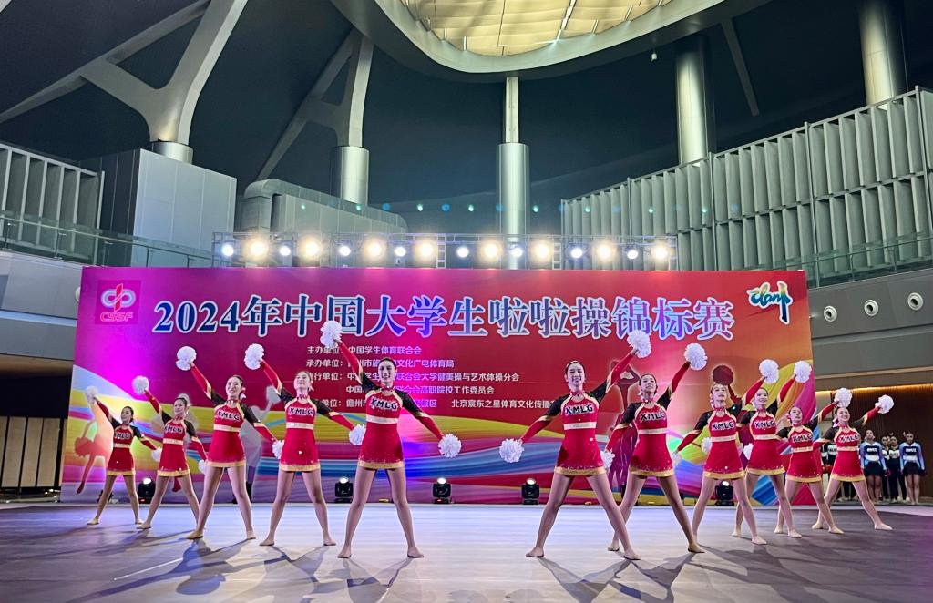 2024年11月14日-19日,由中国大学生体育协会主办的中国大学生啦啦操锦标赛在儋州市隆重开幕。来自北京体育大学、南京大学、吉林大学、广西大学、重庆大学、中山大学天津大学等全国各地的81所高校,千余名运动员齐聚海南,奏响青春与活力的乐章。在学校各部门的大力支持下,开元通识教育学院体育教研室李鑫老师担任领队,田荣、程绘泽老师担任教练员带领12名运动员参加。经过激烈的角逐,最终以出色的表现荣获花球啦啦操自选动作第六名、规定动作第七名,为首次参加全国赛之旅画上了浓墨重彩的一笔。
