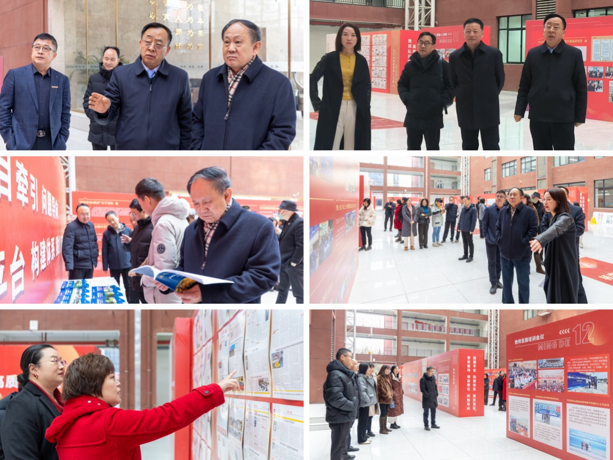 成果展首日,校长王志刚、党委书记马川鑫、党委副书记、副校长、纪委书记白秦川、副校长王斌宁、副校长陈鹏等校领导以及二级学院和职能部门中层干部、二级学院办公室主任等受邀莅临参观。在参观过程中,领导和老师们认真观看了每一个展区的内容,共同回顾了过去一年学校在教师队伍建设培养培训方面的工作历程。