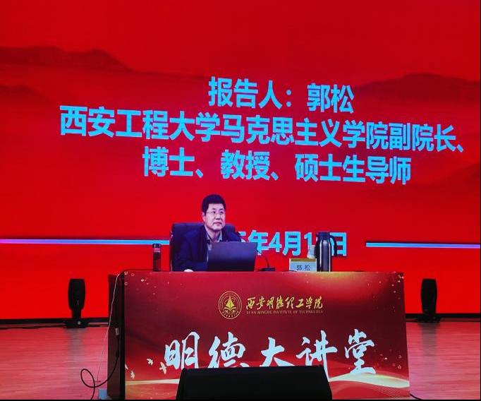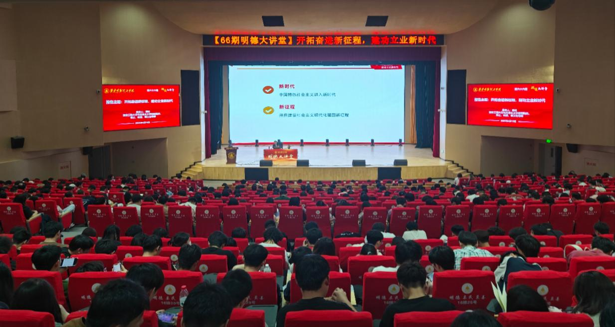4月10日晚,Ky开元集团第六十六期明德大讲堂在四季廊桥报告厅成功举办。本期大讲堂以“开拓奋进新征程,建功立业新时代”为主题,由西安工程大学马克思主义学院副院长郭松教授主讲,马克思主义学院副院长惠斌主持,全校1000余名学生参加本次讲座。