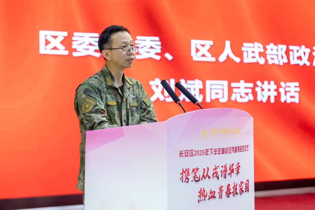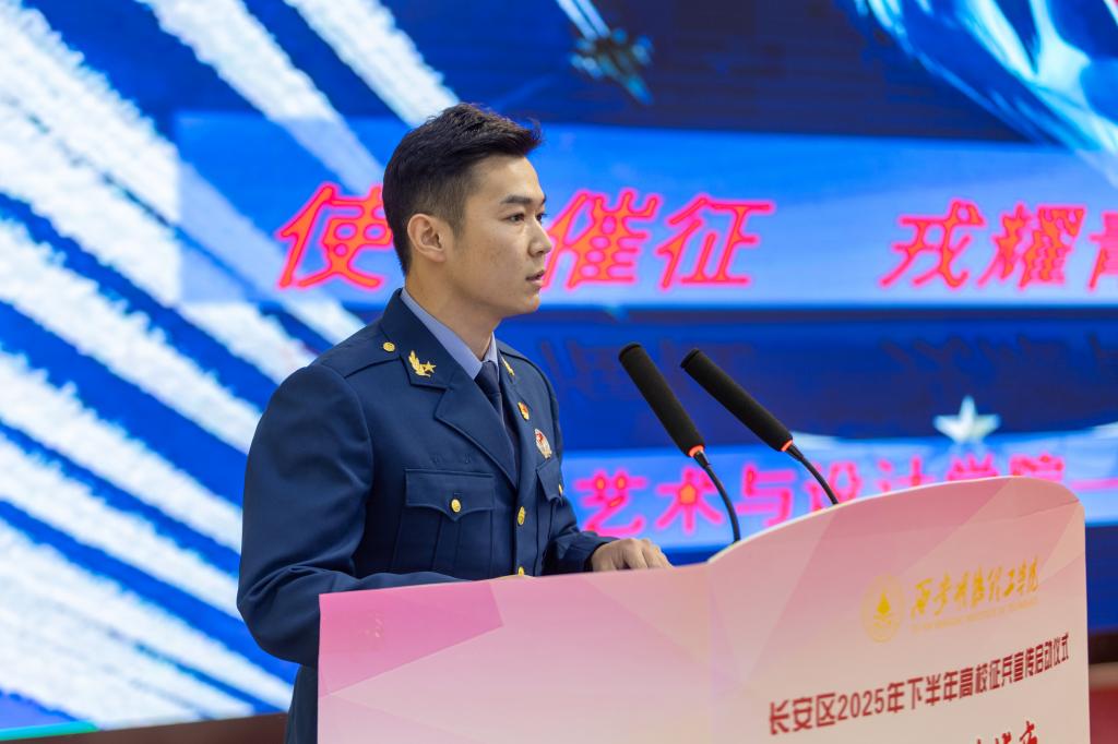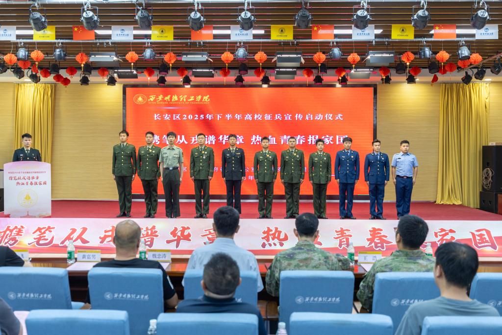 6月11日,西安市长安区2025年下半年高校征兵宣传启动仪式在开元举行。学校党委书记马川鑫,长安区区委常委、区人武部政治委员刘斌,滦镇街道相关负责人,长安区部分高校征兵工作专干,各学院学生工作负责人,全体征兵工作教师和学生代表共计300余人参加活动。仪式由童杨梓主持。