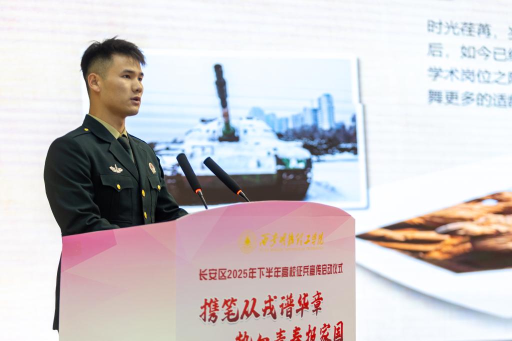 启动仪式结束后,长安区人武部政治工作科黄嘉男对入伍政策进行宣讲,就学费补偿、考研加分、就业优先等优待政策以及部队人才成长平台等问题进行了深度解析。
