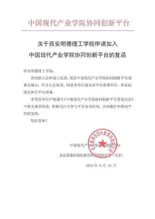 此次荣任理事单位,是学校发展的新起点。未来,学校将进一步深化产教融合、校企协同,加速创新资源汇聚与成果转化效能,全力贡献明德智慧与力量,携手平台成员共促产教融合事业高质量发展,为建成特色鲜明的高水平应用型大学注入强劲动力。