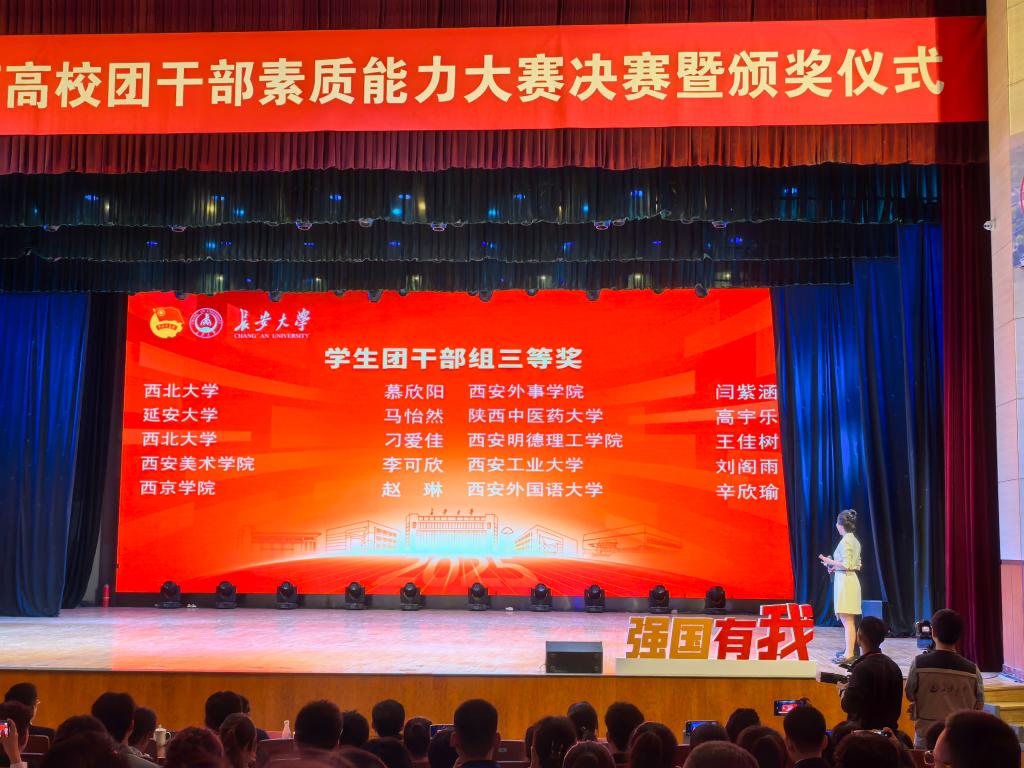 10月12日下午,由共青团陕西省委、中共陕西省委教育工委主办,共青团长安大学委员会承办的第六届陕西高校团干部素质能力大赛落下帷幕。开元经济与管理学院团委书记冯莹莹、艺术与设计学院学生王佳树参加决赛,其中王佳树获得学生团干组三等奖。