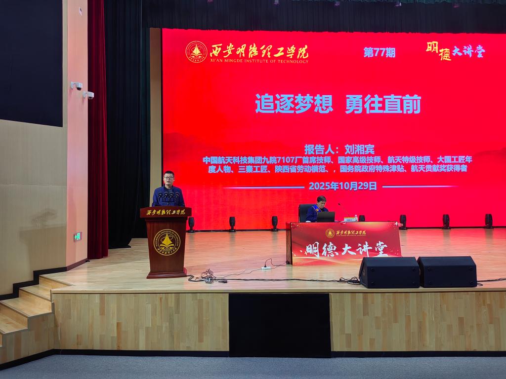 刘湘宾首先介绍了自身观礼9月3日纪念中国人民抗日战争暨世界反法西斯战争胜利80周年阅兵活动的震撼经历,分享了作为一名从事航天惯导装备精密加工40余年的航天人,以“特别能吃苦”的精神打磨每一个零件,用“零差错”的标准筑牢国防基石的感悟。他用朴实无华的语言,深入诠释了工匠精神的时代内涵。以选择、付出、共勉三个关键词为主线,生动勾勒出自己从一名退伍军人到航天领域“高精尖”技能专家的奋斗轨迹。用连续数天坚守岗位攻克项目难题的故事,以志存高远、立足岗位、精益求精、增长本领的成长之道和师生共勉,希望青年一代要将个人理想融入国家发展大局,以过硬本领为中国制造、中国创造贡献青春力量。他鼓励同学们,无论选择何种职业,只要保持专注、坚守热爱,把每一件小事做到极致,就能在平凡中创造不凡。