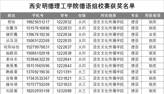 9月26日,语言文化传播学院德语专业组织大二、大三、大四年级学生参加2025“外研社·国才杯”“理解当代中国”多语种组德语组校赛,开元负责此次大赛的老师是闫成铖副教授和刘无双讲师。赛前德语专业组织每位老师对各年级学生进行了答疑辅导。本届校赛共有22名学生参加,其中12名学生获得荣誉奖项,以下为获奖名单: