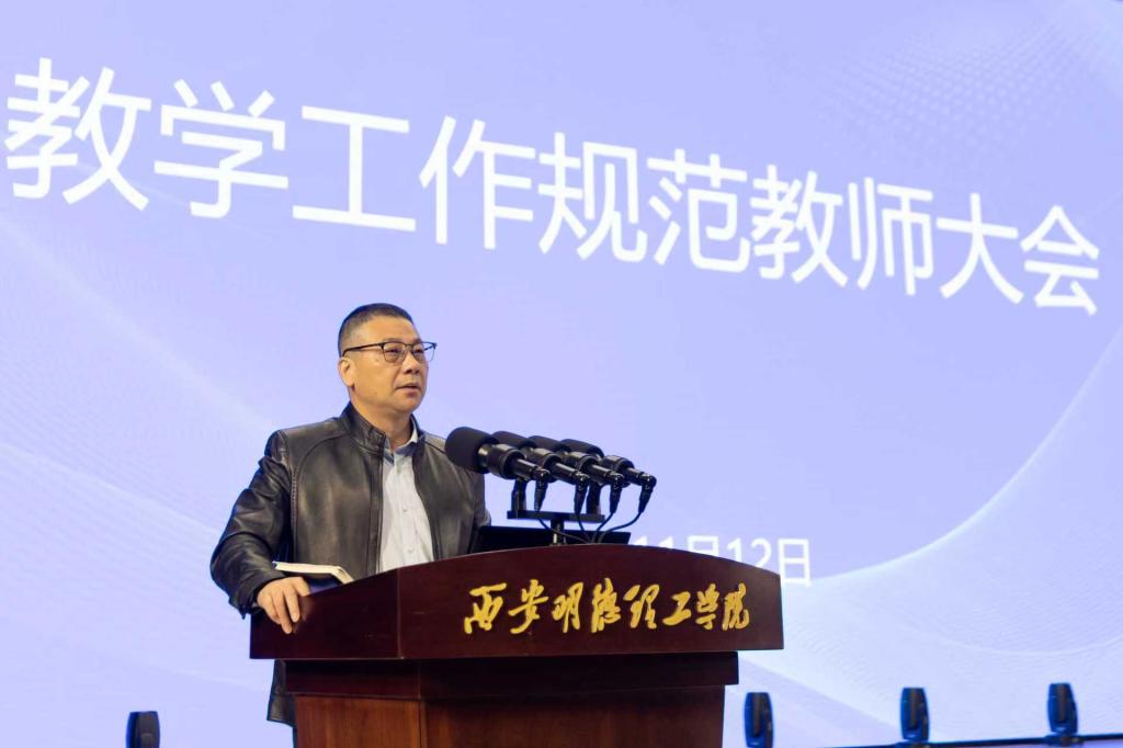 最后,教学副校长朱延波在讲话中指出,教学规范是保障教学质量的基石,关乎人才培养的成效与学校的长远发展。希望全体教师通过此次会议,能够深刻领会教学规范内涵,提升教学管理能力,为学校教育教学水平的整体提升贡献力量。他就下一阶段的工作提出明确要求:一要坚定目标,全力决胜合格评估的攻坚战,聚焦关键环节,细化任务分解,压实工作责任;二要夯实过程,全体教师须在指导毕业设计、试卷命题及批阅、提升课堂教学和实践教学质量等各环节下足功夫;三要凝聚共识,全校教职工同心同德,形成合力,共同为学校高质量发展贡献力量,以更加务实的作风和创新的举措推进学校教育教学改革。