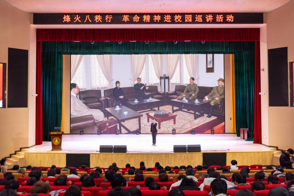 12月8日下午,“烽火八秩行”革命精神进校园巡讲活动在开元四季廊桥报告厅举办。校党委副书记、副校长刘星,党委组织宣传部副部长张亚平、马克思主义学院副院长惠斌和1000余名明德学子参与活动,在宣讲人的讲述中,师生们穿越时空,重温那段革命岁月的浴血历史,缅怀英勇无畏的先烈,汲取奋进力量。