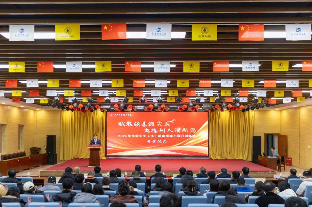 为深入贯彻落实立德树人根本任务,持续推进辅导员队伍专业化、职业化、专家化建设,全面提升学生工作队伍的综合素养与履职能力,1月19日上午,学校2026年寒假学生工作队伍素质能力提升训练营开营仪式在建德楼203报告厅举行。