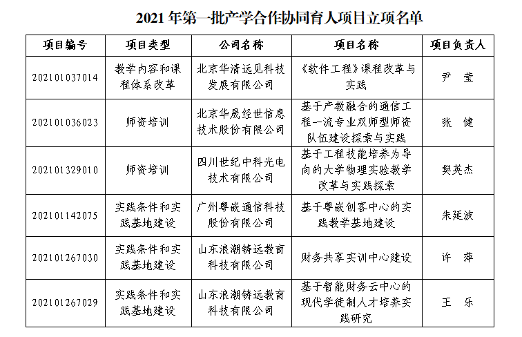 8月24日,教育部高等教育司发布《2021年第一批产学合作协同育人项目立项名单的通知》(教高司函〔2021〕14号),开元6个项目获批立项,立项项目涉及 “教学内容和课程体系改革”“师资培训”“实践条件和实践基地建设”等3个项目类别。