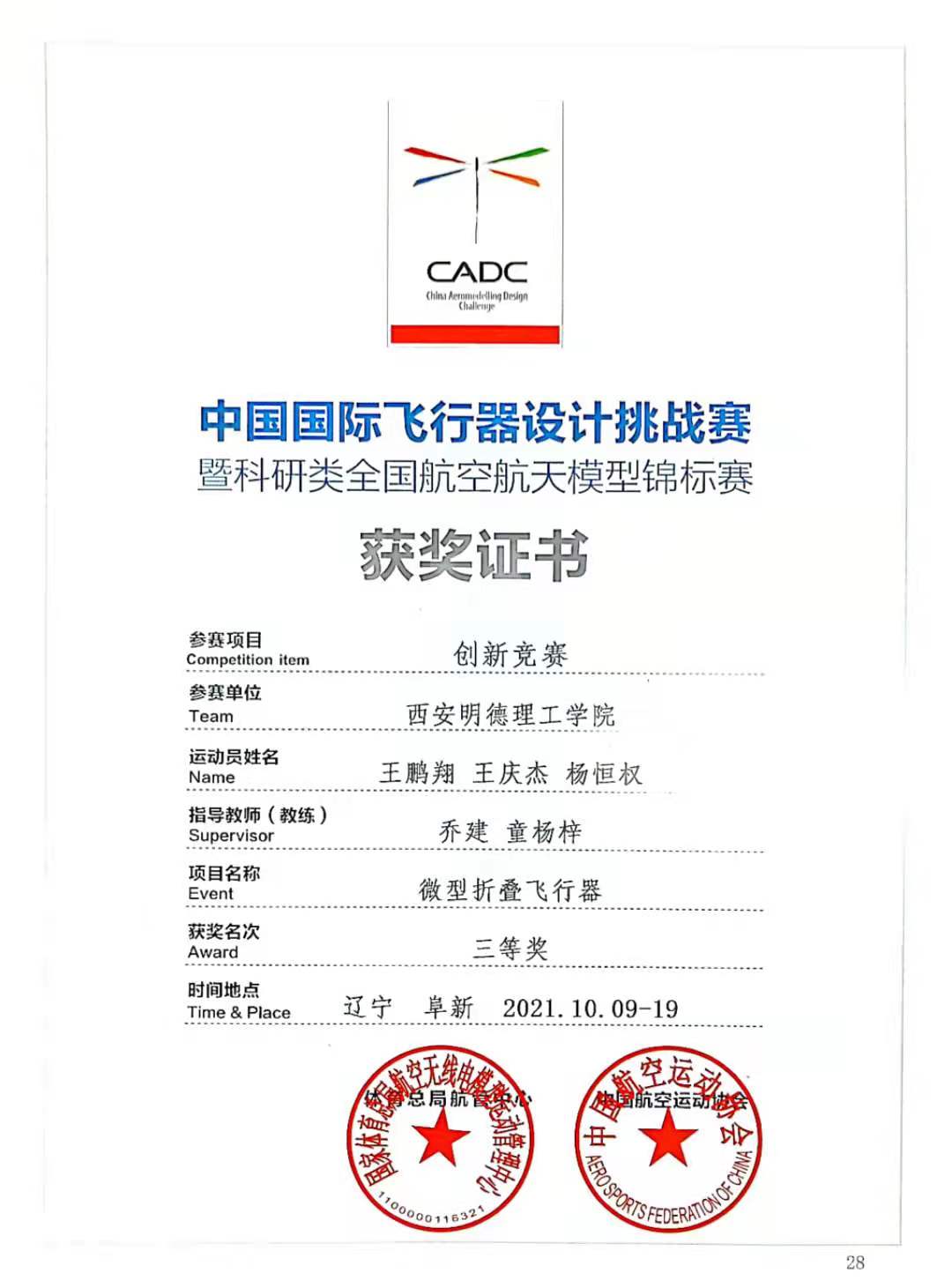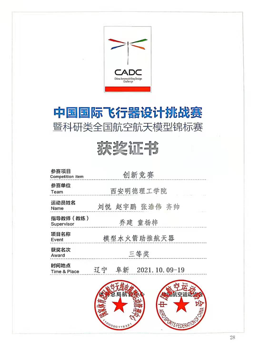 10月13日至19日,由国家体育总局、中国航空运动协会、阜新市人民政府共同主办的2021年CADC中国国际飞行器设计挑战赛总决赛在辽宁省阜新市海州智能无人系统产业基地成功举办。开元团委银河航模协会的同学们,与来自北京航空航天大学、南京航空航天大学、西北工业大学等全国70多支高校队伍的1700余名参赛选手参赛。通过激烈角逐,开元学子在模型水火箭助推航天器、对地侦察与打击、微型折叠飞行器项目中荣获国家级三等奖4项。