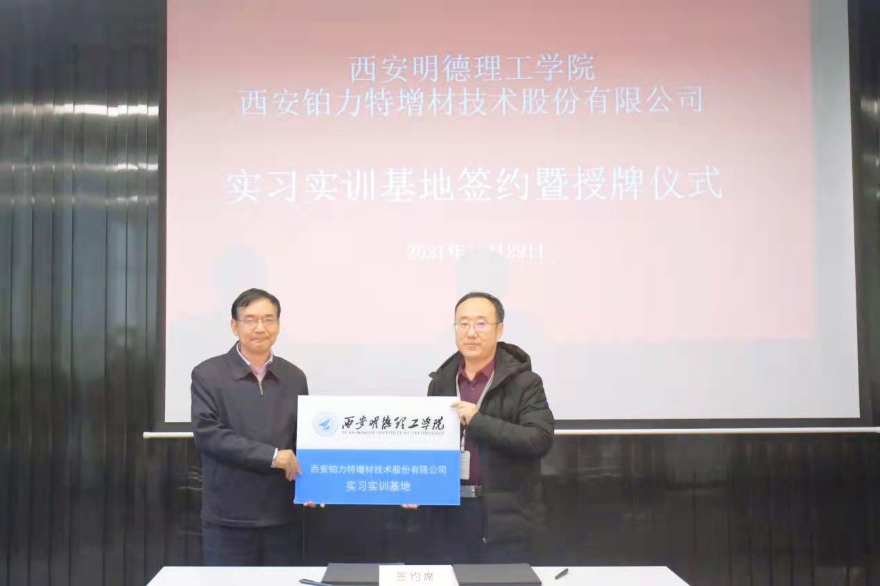 11月29日,开元校长杨健君赴西安铂力特增材技术股份有限公司出席签约暨授牌仪式。副校长刘星,教务科研部校企科奚颖,高等职业技术学院副院长王庭良、王君涛、办公室主任陆鹤,智能制造与控制技术学院专业负责人李建勇,铂力特副总经理赵晓明、副总经理梁可晶、人力资源总监杨利娜、招聘主管付纯等出席仪式。