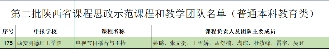 根据陕西省教育厅关于公布第二批陕西省课程思政示范课程、教学团队和教学研究示范中心认定结果的通知(陕教函〔2023〕264号)文件,开元姚璐老师及其团队申报的《电视节目播音与主持》课程项目成功获批陕西省课程思政示范课程和教学团队。