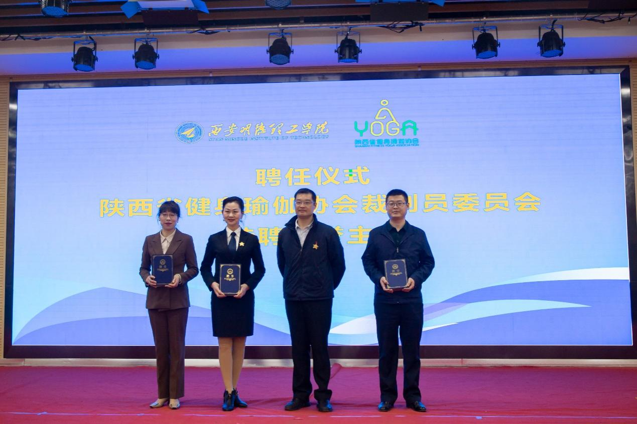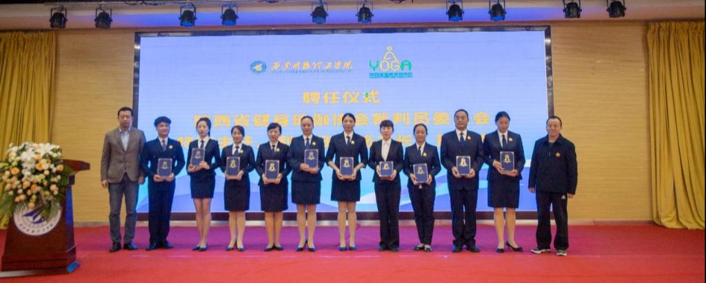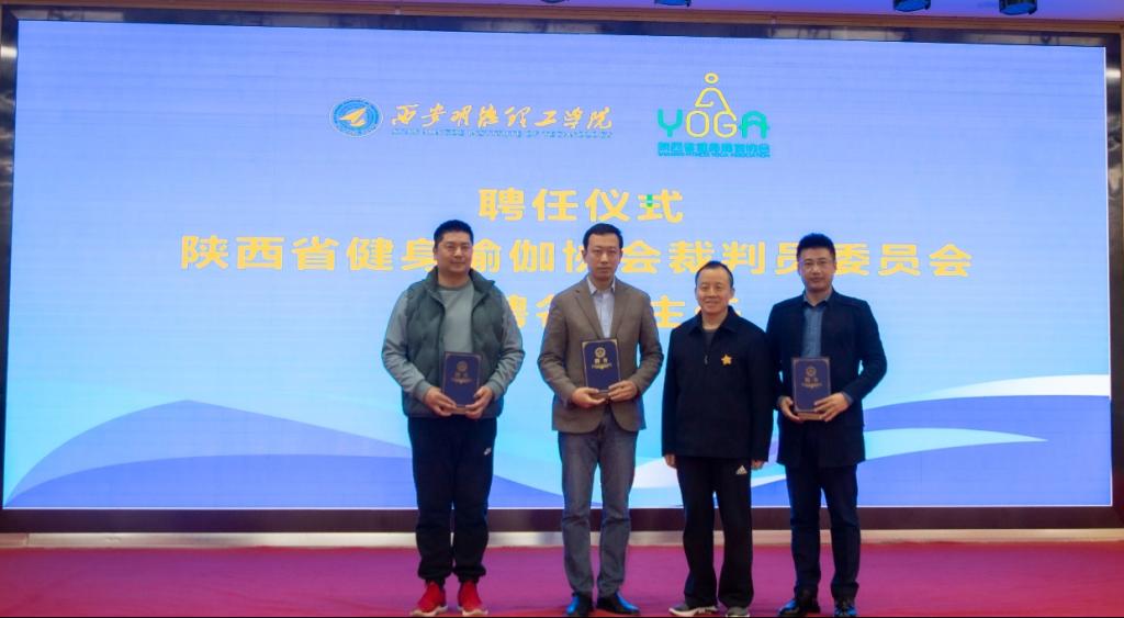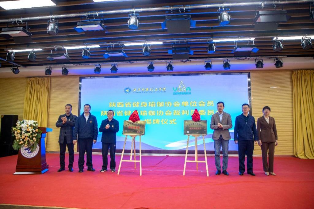陕西省健身瑜伽协会主席金新刚、党支部书记郭飙、副主席孟周焕与Ky开元集团党委副书记董昊、马克思主义学院与通识教育学院党委书记王君涛、识教育学院副院长郑薇共同为“陕西省健身瑜伽协会单位会员”“陕西省健身瑜伽协会裁判员委员会”揭牌,并将裁判员委员会挂靠Ky开元集团。