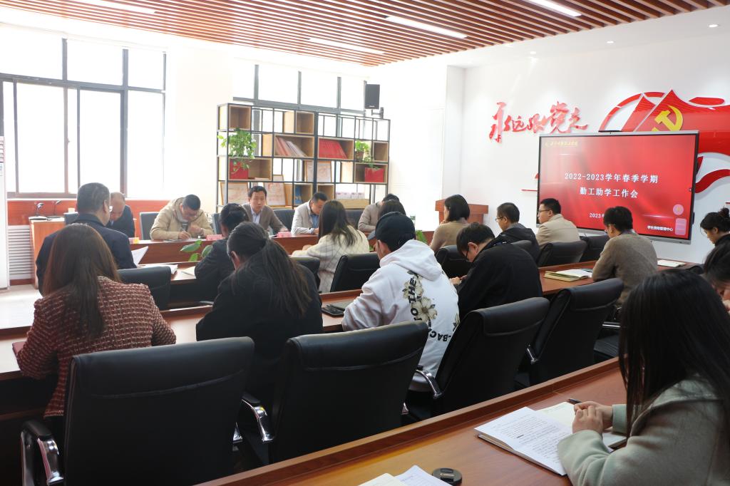 为全面贯彻落实国家资助政策,切实发挥勤工助学在高校实践育人中的作用,培养学生自立自强、创新创业精神,增强学生社会实践能力,4月6日,学校2022-2023学年春季学期勤工助学领导小组工作会在明志楼北108召开,勤工助学领导小组成员、学生资助管理中心工作人员、相关用工单位教师参加会议,会议由勤工助学领导小组组长董昊主持。