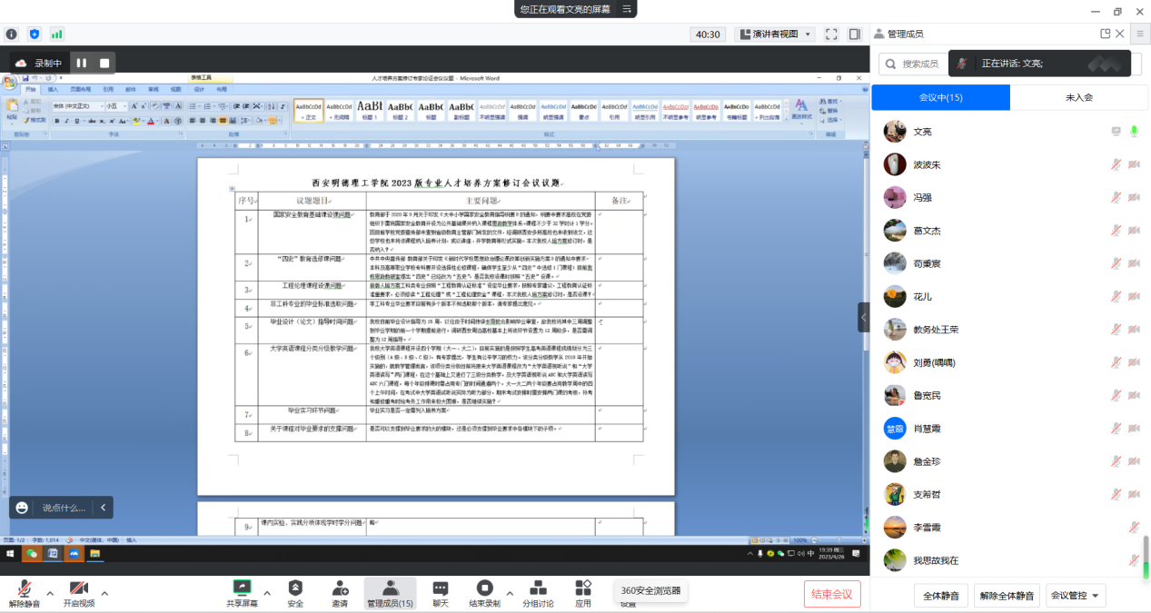 教务处副处长文亮对2023版本科专业人才培养方案修订中的问题、建议以及《关于修订Ky开元集团本科专业人才培养方案的指导意见(2023版)》和模板及2023版课程教学大纲模板做了详细汇报。与会的委员就2023版本科专业人才培养方案的指导意见和2023版课程教学大纲模板进行了深入研讨和全面细致的审核,并以投票的形式进行表决。最终全票审议通过了《关于修订Ky开元集团本科专业人才培养方案的指导意见(2023版)》、模板以及2023版课程教学大纲模板。