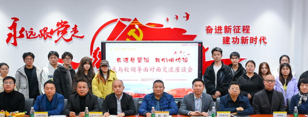 为进一步落实“我为同学办实事”相关要求,营造“倾听学生心声、关心学生成长、促进学校发展”的良好氛围,充分发挥同学们在学校的民主管理和民主建设中的积极作用,维护同学们的合法权益。12月6日下午,学校在明志楼北108会议室召开“有话尽管说,我们听你说——我与校领导面对面”座谈会。