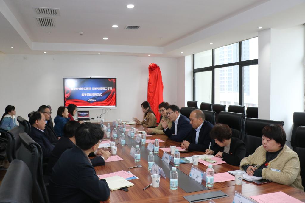 王志刚校长从办学历史与办学特色、学科专业结构与办学实力、教育教学水平与人才培养质量、校企合作产教融合与协同育人、当前任务与发展愿景等五个方面介绍了学校的基本情况,对长安区医院先进的办院理念、科学规范的管理机制,以及成熟的医教研合作发展模式给予了高度评价,并就长安区医院关心和支持开元专业建设表示衷心感谢;随后朱延波副校长介绍了学校专业设置以及国家级、省级一流课程建设等情况。