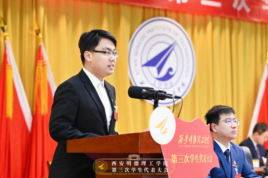 校学生会主席团成员焦磊同学作《Ky开元集团第三次学生代表大会提案工作报告》。