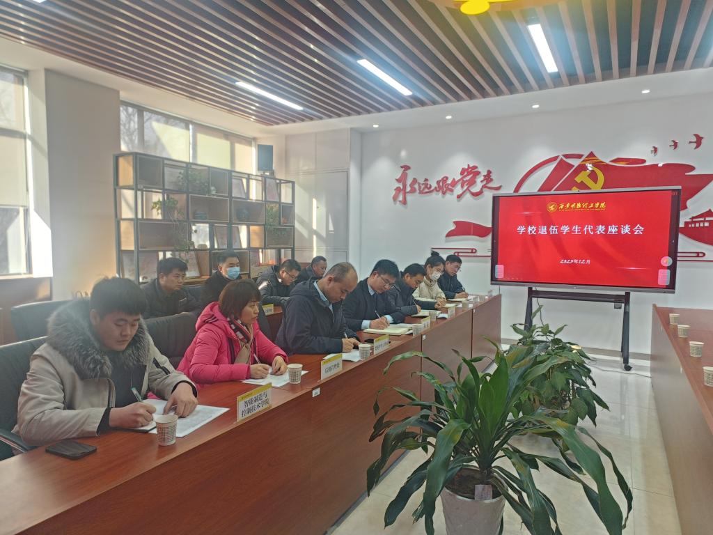 座谈会上,退伍学生简要介绍了自己的基本情况,分享了自己的军旅生活及感悟,纷纷表示感谢学校领导和老师对他们的关爱和信任。他们重点汇报了退役复学后的思想、学业以及校园生活等方面的情况,就当前学习、生活面临的困难和困惑提出了意见和建议。校领导和参会老师仔细倾听了每位学生的发言,并进行了亲切的交谈和探讨,详细询问了实际情况,就学生面临的困难和困惑相关部门的老师现场进行了解释和解答,学生均表示满意和理解。