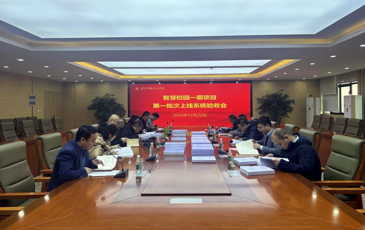 2023年12月22日下午,学校在明志楼南518会议室组织召开了智慧校园一期项目第一批次上线系统验收会。集团信息化部总经理王晓波、学校副校长刘星、副校长陈鹏、验收组成员以及智慧校园一期项目第一批次上线系统业务单位负责人参加会议。会议由网络信息化中心副主任侯镇锋主持。