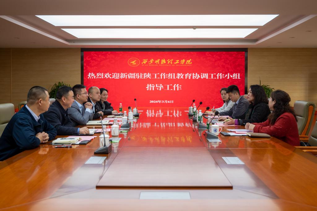 刘星对新疆驻陕教育协调小组的到访表示欢迎,对教育协调小组给予学校工作的关心、支持和指导表示感谢,并介绍了学校的办学特色和相关工作开展情况。童杨梓汇报了学校少数民族学生教育服务管理工作情况,介绍了开展少数民族学生学业指导、资助帮困、就业帮扶、心理辅导、生活服务等工作的基本经验、做法和成效。派驻教师那迪娜从少数民族学生日常管理、思想政治教育等方面进行简要汇报,开元对少数民族学生实行一体化管理,以思政课为主阵地,以实践活动、各类培训学习和校园文化活动等为载体,铸牢少数民族学生中华民族共同体意识,培育正确的民族观。