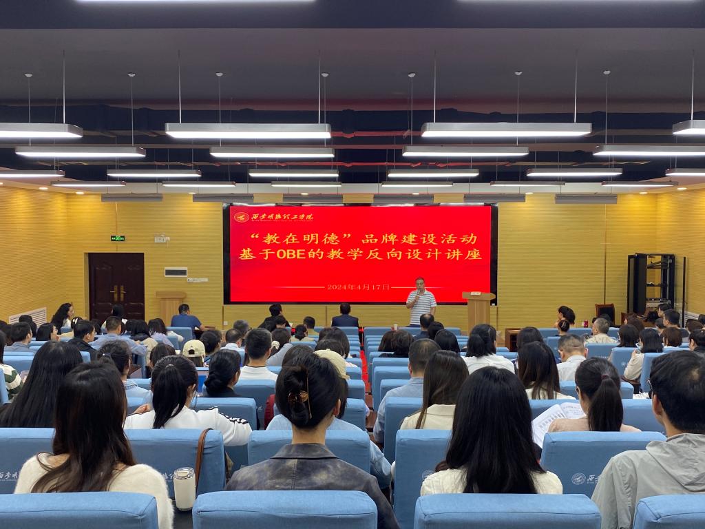 为深入贯彻落实学校《关于开展“教在明德”系列教学(学术)活动安排的通知》要求,提升教师对OBE理念的深刻理解和有效执行,学校于4月17日下午在建德楼201报告厅,开展了基于OBE的教学反向设计讲座。副校长朱延波出席,各二级学院教学副院长、专业负责人、骨干教师及教务处相关人员参加了讲座。讲座由教务处副处长文亮主持。
