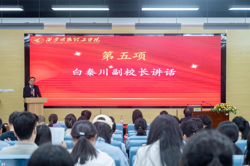 白秦川副校长发表热情洋溢的讲话。他首先对各位专家为开元青年教师教学赋能、为成长助力表示热烈的欢迎和衷心的感谢。他认为,面对教育数字化变革,这就要求我们青年教师积极主动拥抱数字化时代,提升利用数字技术优化、创新和变革教育教学活动的意识、能力和责任,为教学赋能;“十四五”期间学校面临着高质量转型发展和顺利通过教育部本科教学合格评估两大历史任务。2025年学校要接受教育部本科教学合格评估。需要我们在教学理念、教学方法、教学评价等方面进行全面的改革和创新,为2025年顺利通过本科教学合格评估工作奠定坚实基础;青年教师是高校教师的主体,是学校发展的基础与希望。青年教师的成长,是学校办学成功与否的重要标志,更是学校各项事业能否持续发展的关键。新教师及青年教师教学能力提升研修班旨在帮助开元教师队伍明确立德树人使命,树立良好师德师风,掌握扎实教育教学理论,练就专业化教学基本功,筑牢站上讲台的职业之基,增强站稳讲台的专业化本领,铸就站好讲台的发展之翼。